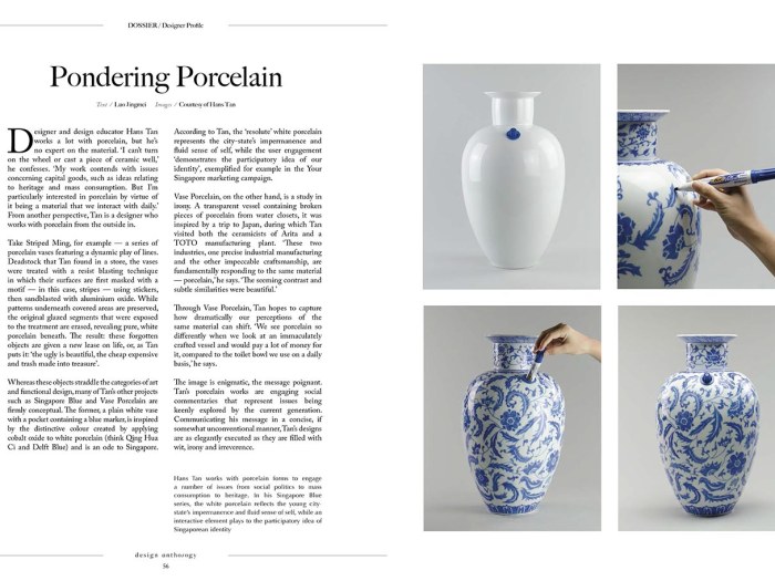 She has contributed to a wide range of international and local publications and design websites. These include Vogue Living Australia, Sleeper, Habitus, Surface Asia, Robb Report Singapore, The U Press, Cubes, D+A Magazine, Indesignlive.sg, and Habitusliving.com.sg.