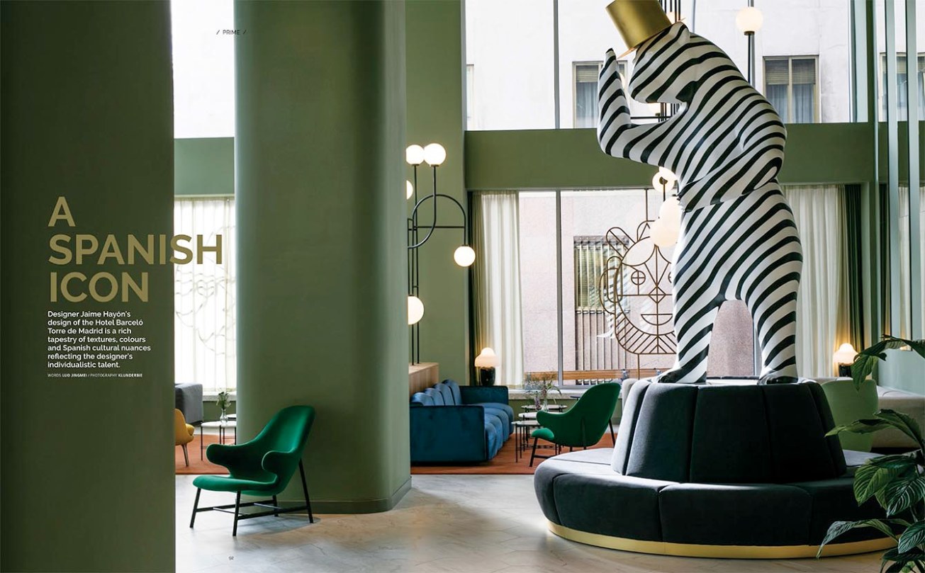 Designer Jaime Hayón’s design of the Hotel Barceló Torre de Madrid is a rich tapestry of textures, colours and Spanish cultural nuances reflecting the designer’s individualistic talent.